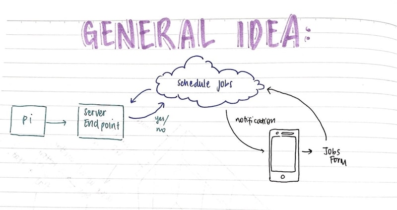 The developers in my team used Azure to host a nodeJS server. The server would read, write and edit the schedules and pillboxes. It would also decide when the next reminder is, and ask the Raspberry Pi to check.